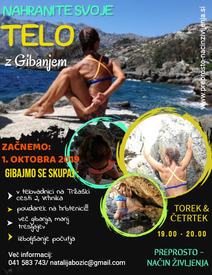 - poudarek bo na izpeljavi vaj, ki ščitijo in hkrati krepijo našo hrbtenico ter trup v celoti
