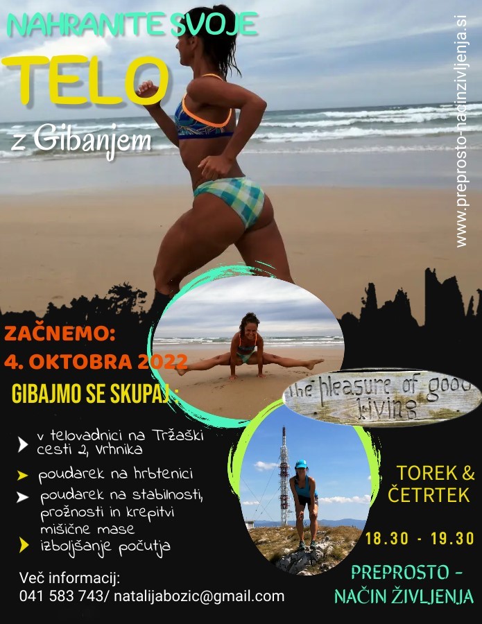 Z vadbo smo začeli v telovadnici 4.Oktobra. Vadba poteka vsak torek in četrtek ob 18.30 do 19.30. Na našo vadbo se lahko priključite kadarkoli. Vadbo lahko obiskujete 1x ali 2 x tedensko. Priporočam 2 x tedensko, saj je pogostost gibanja izjemnega pomena za zdravje. Poleg te vadbe vam toplo priporočam tudi gibanje v naravi.